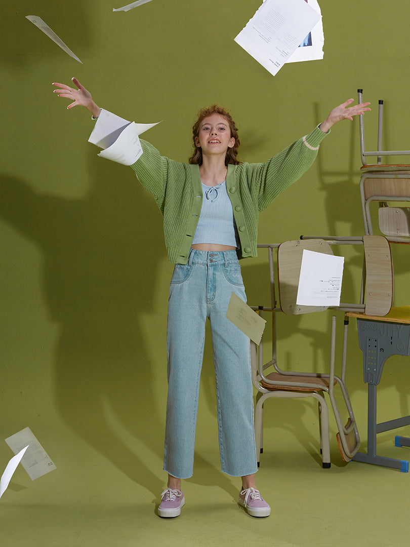 Grass green sweater cardigan sweater