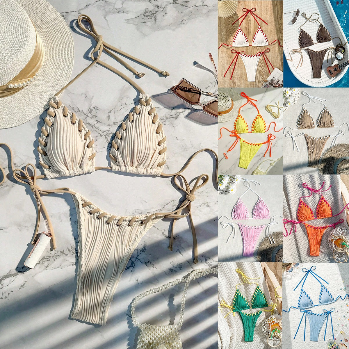 New Bikini Swimsuit Sexy Solid Color Black Eye Rope