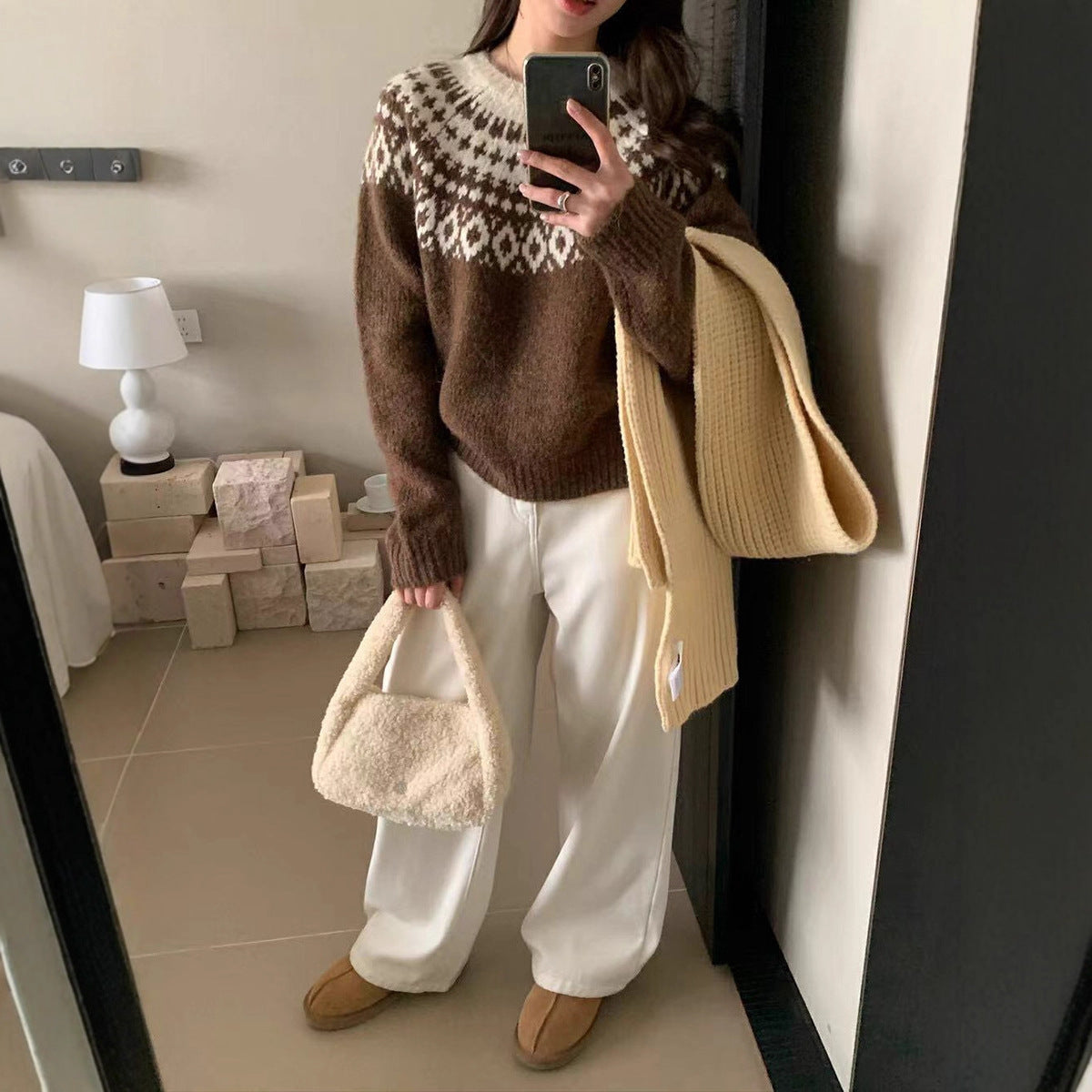 New Round Neck Loose Slimming Christmas Style Knitwear Top