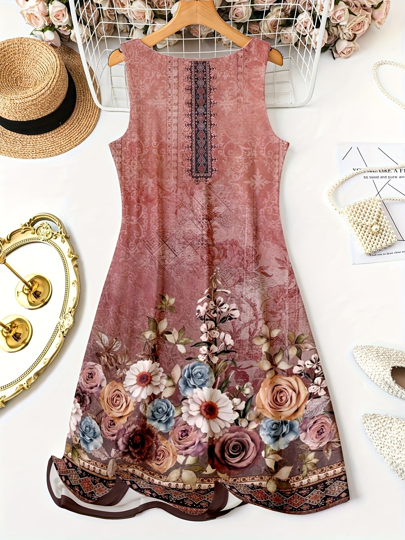Self-pick-up Plus Size Women'S Floral Print V Neck Casual Sleeveless Dresses Only Self-pickup Is Supported
